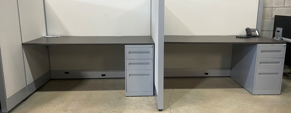 Combine all three! Custom executive desks + new standard workstations + used storage = maximum budget optimization.